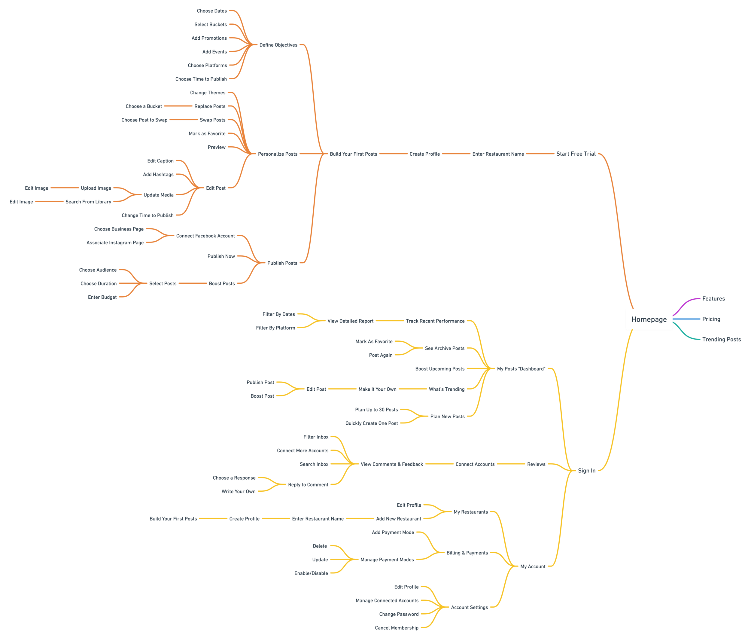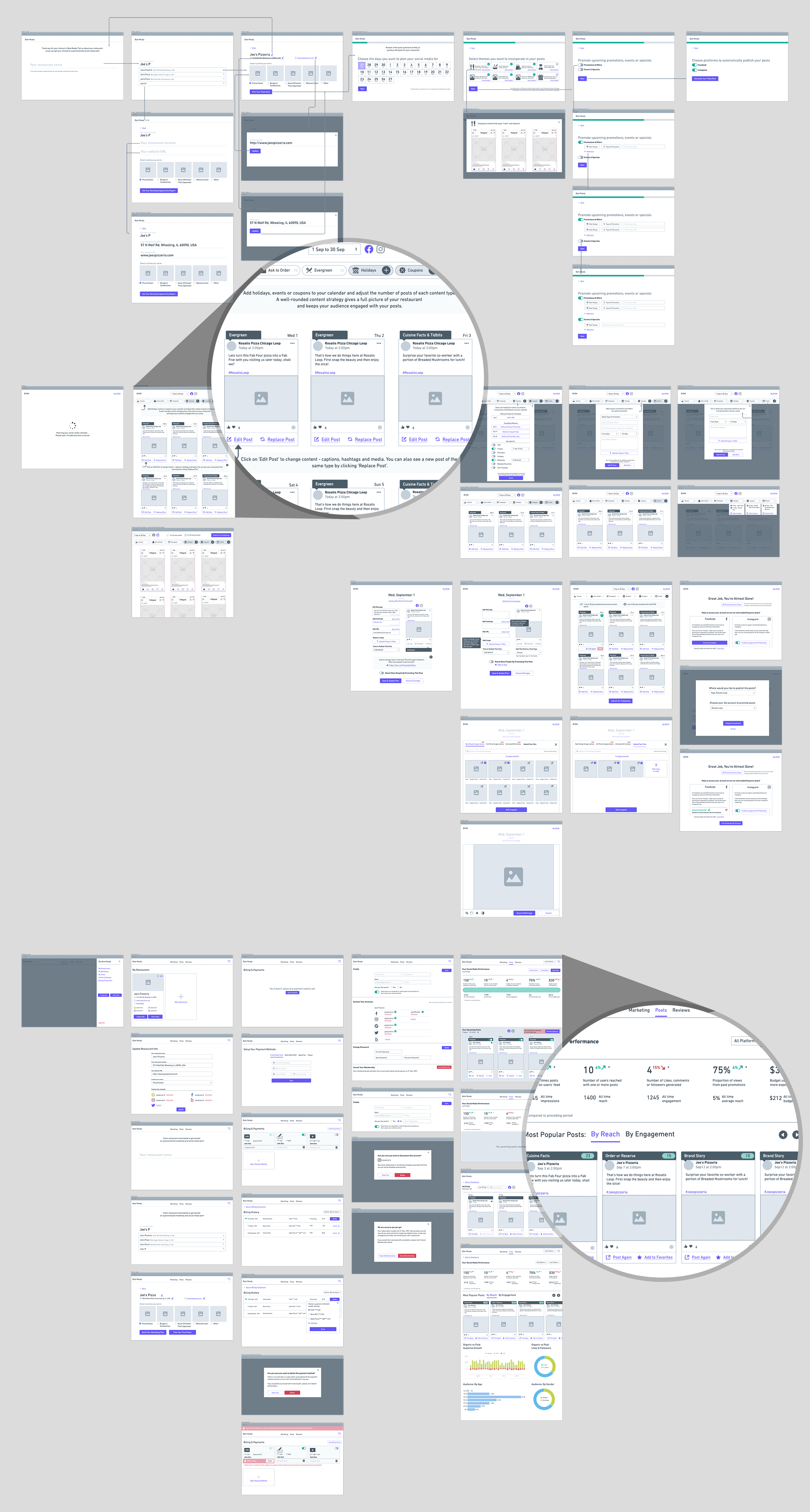 The mobile app for the first phase was designed to let restaurant owners keep a track on their social media performance, boosting or making quick edits to upcoming posts and being able to respond to any reviews, comments and feedback from customers.
